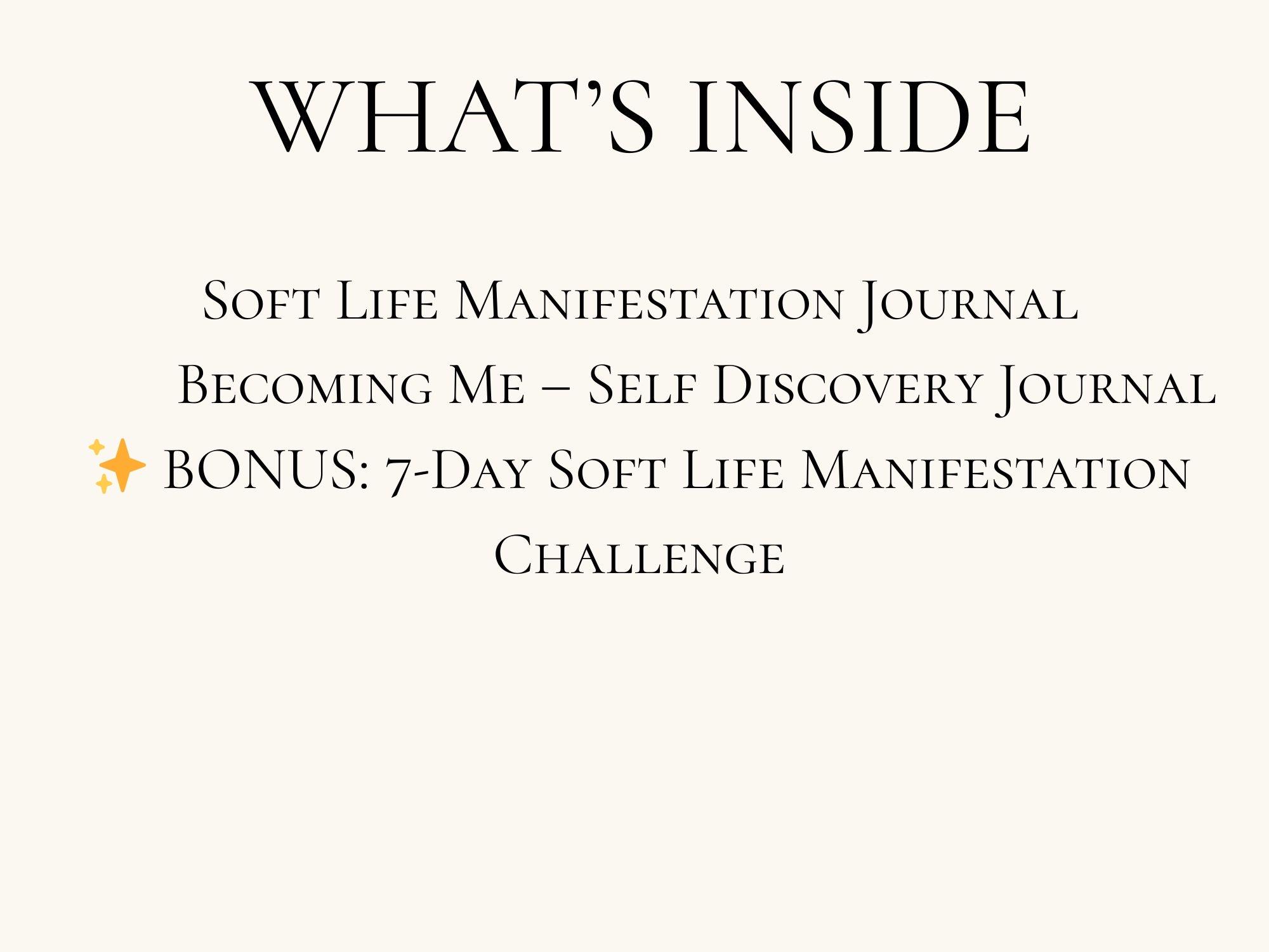 What’s included: Soft Life Manifestation Journal Becoming Me – Self Discovery Journal
