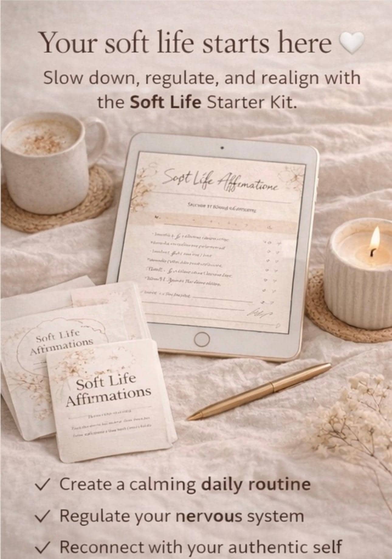 ✨ Create a calm daily routine ✨ Feel grounded and emotionally safe ✨ Reconnect with yourself ✨ Step into your soft, abundant life