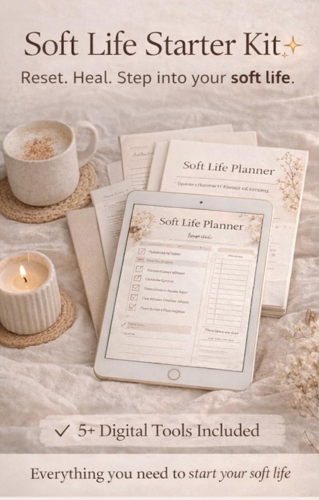 The Soft Life Starter Kit is your all-in-one reset—designed to help you slow down, regulate your nervous system, and step into a peaceful, aligned version of yourself.